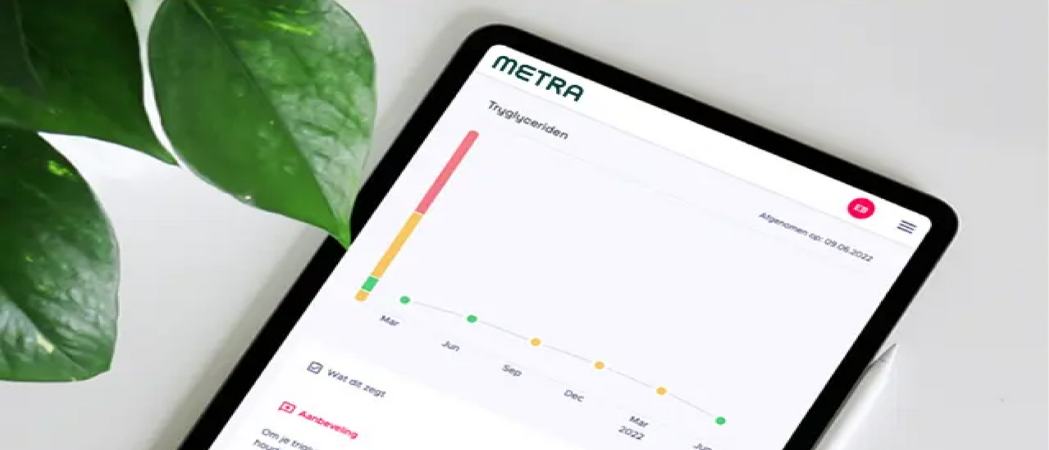 Metra heeft toegang tot laboratoriumresultaten gemoderniseerd en levert je betrouwbare, klinisch gevalideerde en praktische resultaten. En dat op basis van een paar druppels bloed die door jou zelf verzameld worden in het comfort van je eigen huis. Meer dan 70% van de mensen die starten met mindere resultaten op hun eerste test zien de tweede keer al verbetering na het doorvoeren van veranderingen en dat is mooi! Langetermijns aandoeningen zoals diabetes en hart- en vaatziekten zijn namelijk vaak te voorkomen of uit te stellen, omdat ze sterk in verband staan met je levensstijl. In principe is 80% van de chronische ziekte zelfs te voorkomen door preventief aan de slag te gaan. Dat verlaagd niet alleen de groeiende druk op de (eerstelijns) zorg, het geeft je meer energie, focus en kans op een langer en gezond leven.